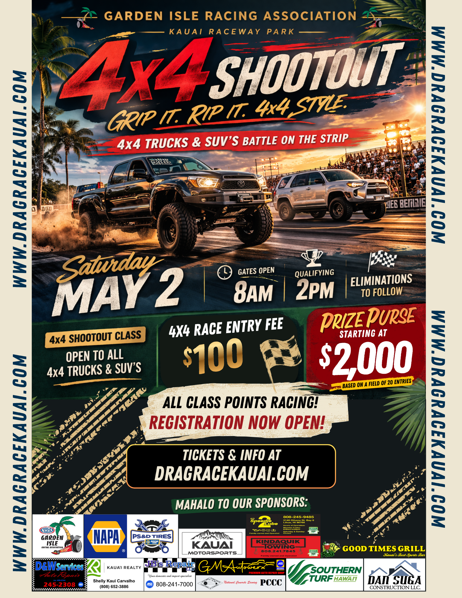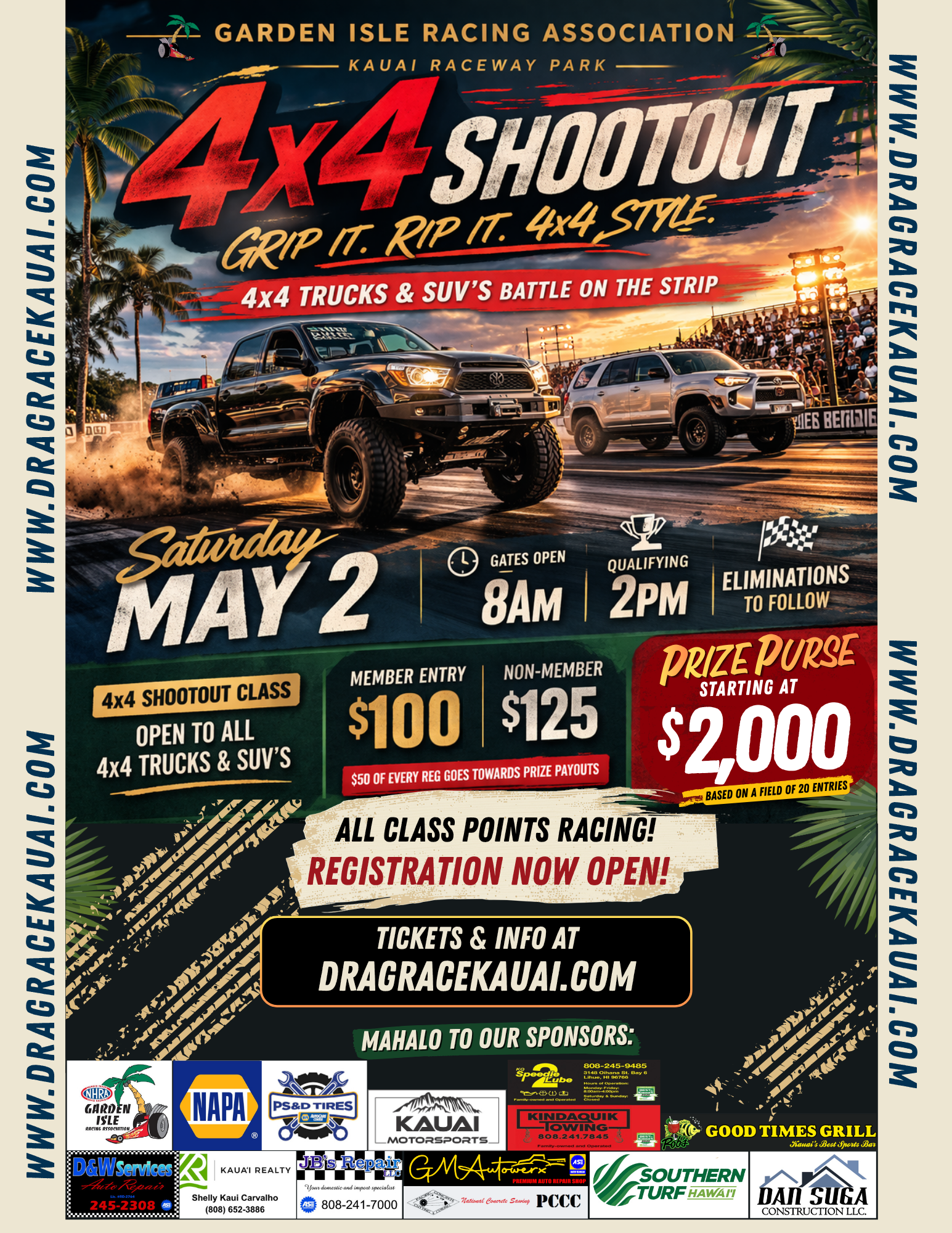 Spectators & Racers - Event Tickets can be purchased online at The Foat.
